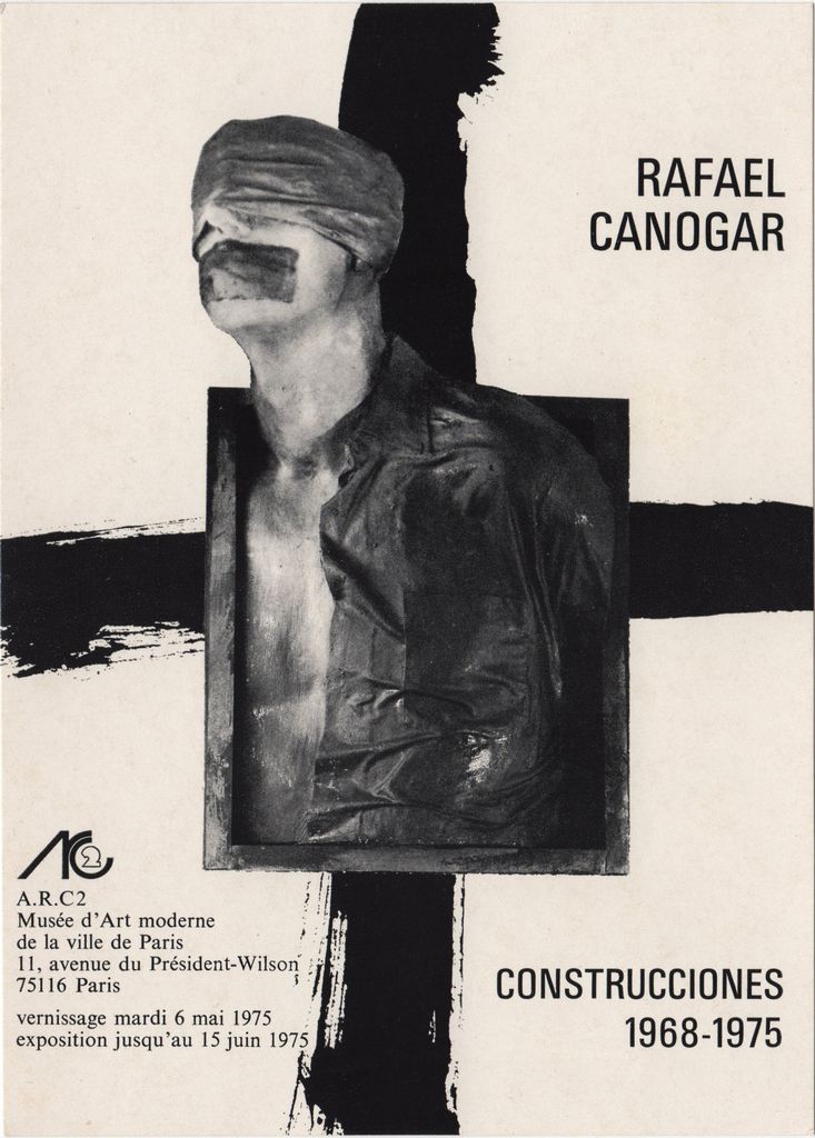 Έντυπο, χαρτόνι, 16×11.5 εκ., στα ισπανικά και γαλλικά, έκθεσης του Rafael Canogar, η οποία διεξάγεται στο Παρίσι.