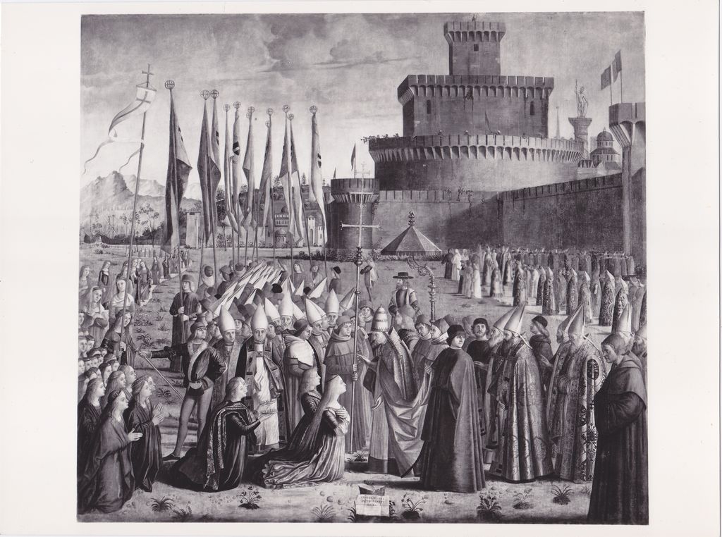 Φωτογραφία, α/μ, φωτογραφικό χαρτί, 17,5×26,5 εκ. Αναπαραγωγή έργου του Ιταλού καλλιτέχνη Vittore Carpaccio. Στην πίσω όψη, επικολλημένη ετικέτα με δακτυλόγραφη λεζάντα και επιγραφή.