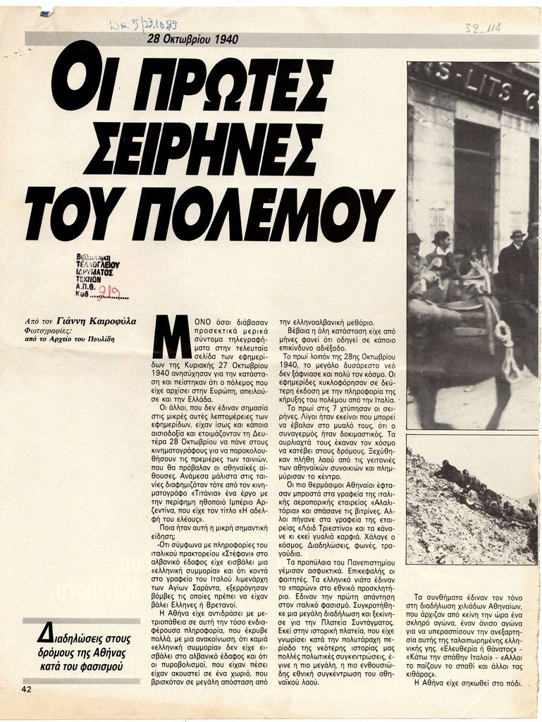 28 Οκτωβρίου 1940. Οι πρώτες σειρήνες του πολέμου