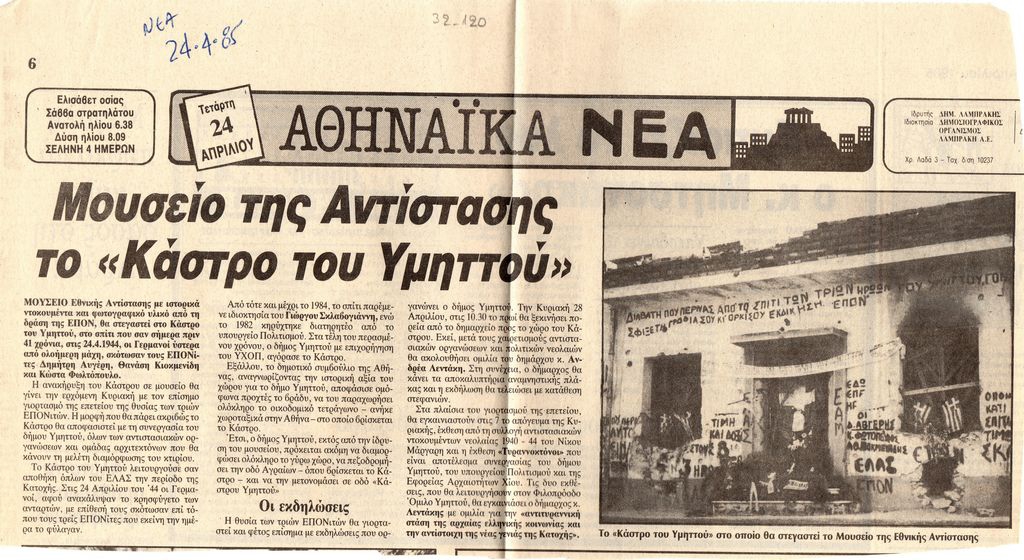 Εφημερίδα "Αθηναϊκά Νέα", 24/04/1985