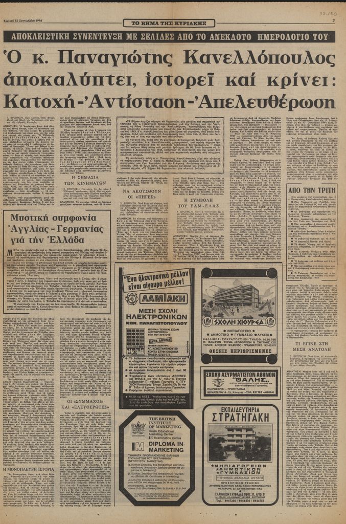 Ο κ. Παναγιώτης Κανελλόπουλος αποκαλύπτει, ιστορεί και κρίνει: Κατοχή – Αντίσταση – Απελευθέρωση