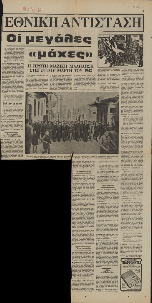 Εθνική Αντίσταση. Οι μεγάλες «μάχες». Η πρώτη μαζική διαδήλωση στις 24 του Μάρτη του 1942