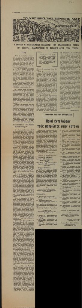 Απόκομμα, έντυπο, στα ελληνικά, χαρτί, διπλής όψης, 64×17 εκ. Στο ίδιο απόκομμα: “Ποιοι εκτελούσαν τους πατριώτες στην Κατοχή” και επικαιρότητα.