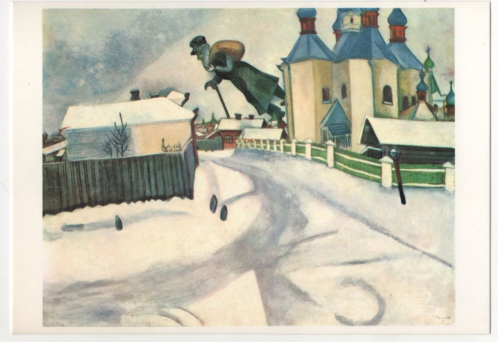Ταχυδρομική κάρτα, χαρτόνι, 10.5×15 εκ., με έγχρωμη αναπαραγωγή έργου του Marc Chagall.