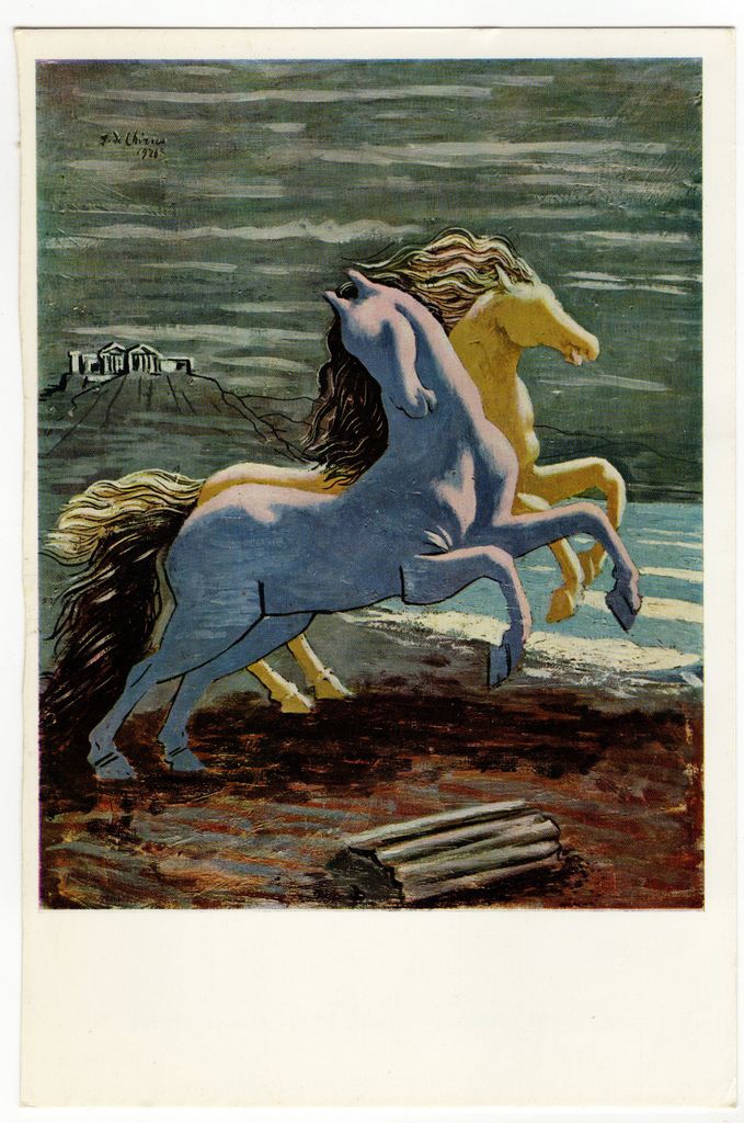 Απόκομμα κάρτας, χαρτόνι, 17×11 εκ., με έγχρωμη αναπαραγωγή έργου του Giorgio de Chirico.