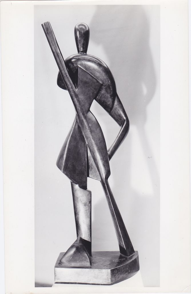 Φωτογραφία, α/μ, φωτογραφικό χαρτί, 24,2×15,5 εκ. Αναπαραγωγή έργου του Alexander Archipenko, με τίτλο “Gondolier”, μπρούτζος, 1914. Στην πίσω όψη, επιγραφές, σφραγίδα φωτογράφου (επικαλυμμένη), σφραγίδα της Galerie “Im Erker” St. Gallen και επικολλημένη ετικέτα με τον αριθμό 13.