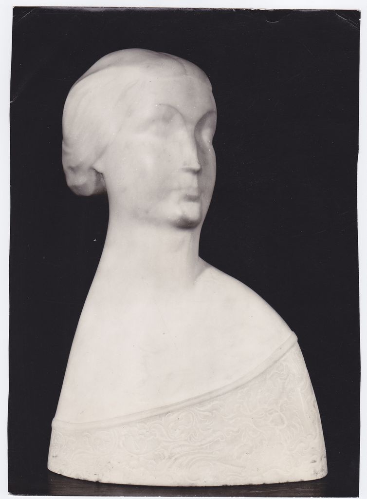 Φωτογραφία, α/μ, φωτογραφικό χαρτί, 22,2×16,0 εκ. Αναπαραγωγή του έργου του Alexander Archipenko “Die Gattin des Künstlers”, μάρμαρο. Στην πίσω όψη, επικολλημένη ετικέτα του Museum der bildenden Künste zu Leipzig”, έντυπη, με επιγραφές με τα στοιχεία του έργου.