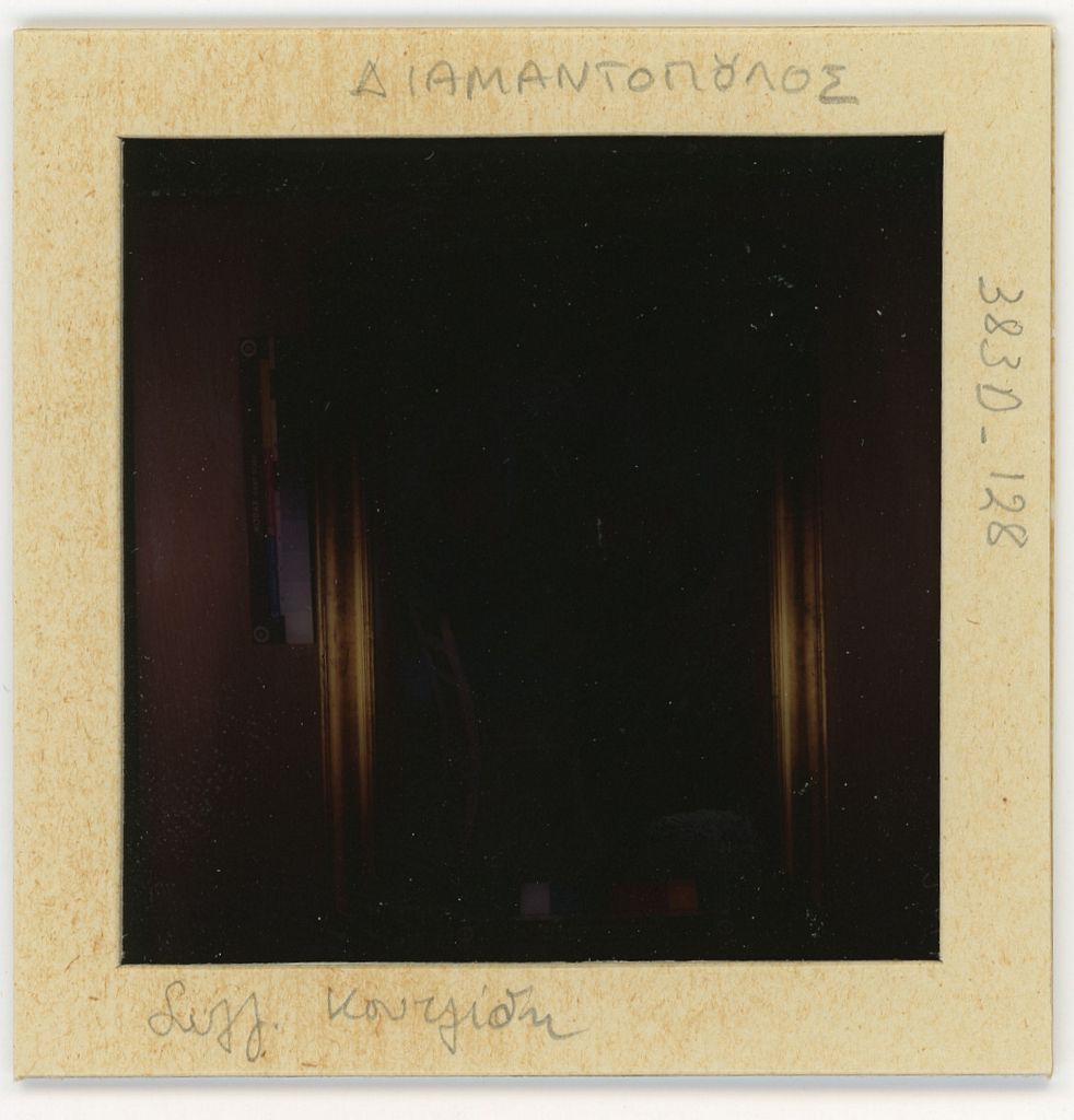 Διαφάνεια (slide), έγχρωμη, 6,0×6,0 εκ., σε χάρτινο πλαίσιο, 7,0×7,0 εκ. Αναπαραγωγή έργου του Διαμαντί Διαμαντόπουλου. Στο πλαίσιο επιγραφή.