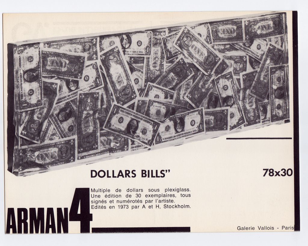 Έντυπο, στα γαλλικά, χαρτόνι, δύο όψεις, 16,0×12,0 εκ. Κάρτα με αναπαραγωγή έργου του εικαστικού καλλιτέχνη Arman. Στην πίσω όψη, λεζάντα με τα στοιχεία της κάρτας: Galerie Valois. 15rue st.Denis Paris 1er. Imrimerie Serg Ivry. © Galerie Vallois Paris.