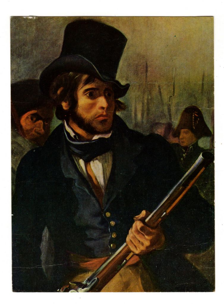Ταχυδρομική κάρτα, χαρτόνι διπλής όψης, 15 x 11 εκ., στα γαλλικά, με έγχρωμη αναπαραγωγή έργου του Eugène Delacroix.