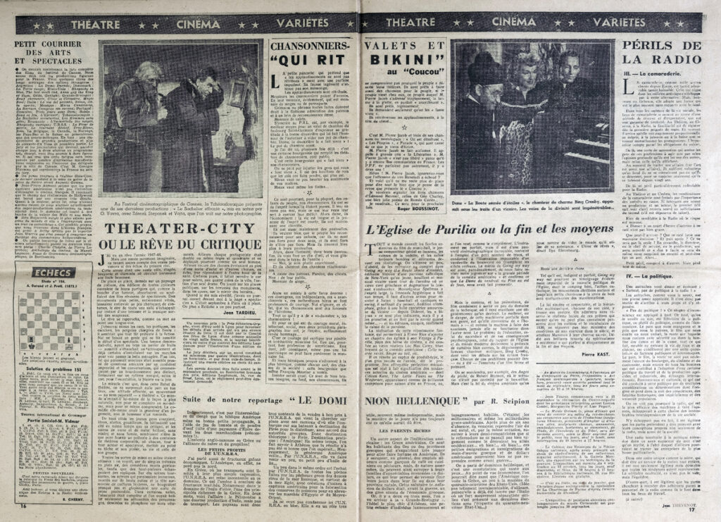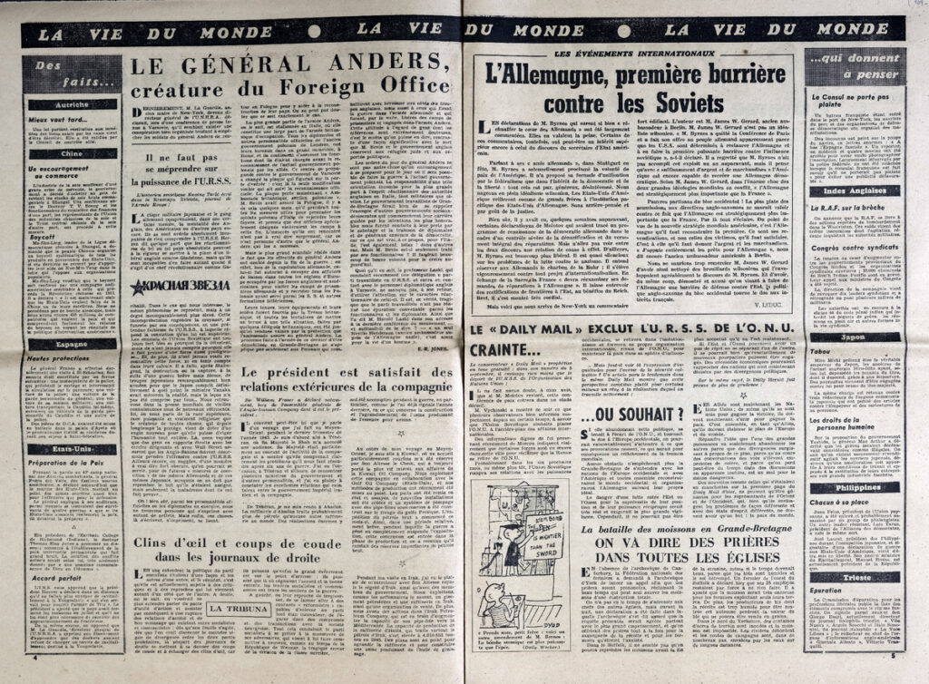 Έντυπο, στα γαλλικά, χαρτί, 10 σελίδες, 43×30 εκ. Στην πρώτη σελίδα σφραγίδα “International Book & News Agency”. Το τεκμήριο εικονογραφείται.