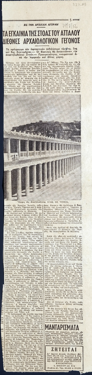 Τα εγκαίνια της στοάς του Αττάλου διεθνές αρχαιολογικόν γεγονός