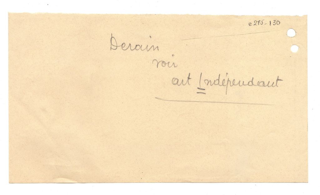Απόκομμα, χαρτί, 12×21 εκ., στα γαλλικά, με χειρόγραφη με μολύβι σημείωση του Τώνη Σπητέρη-παραπομπή για τον André Derain.