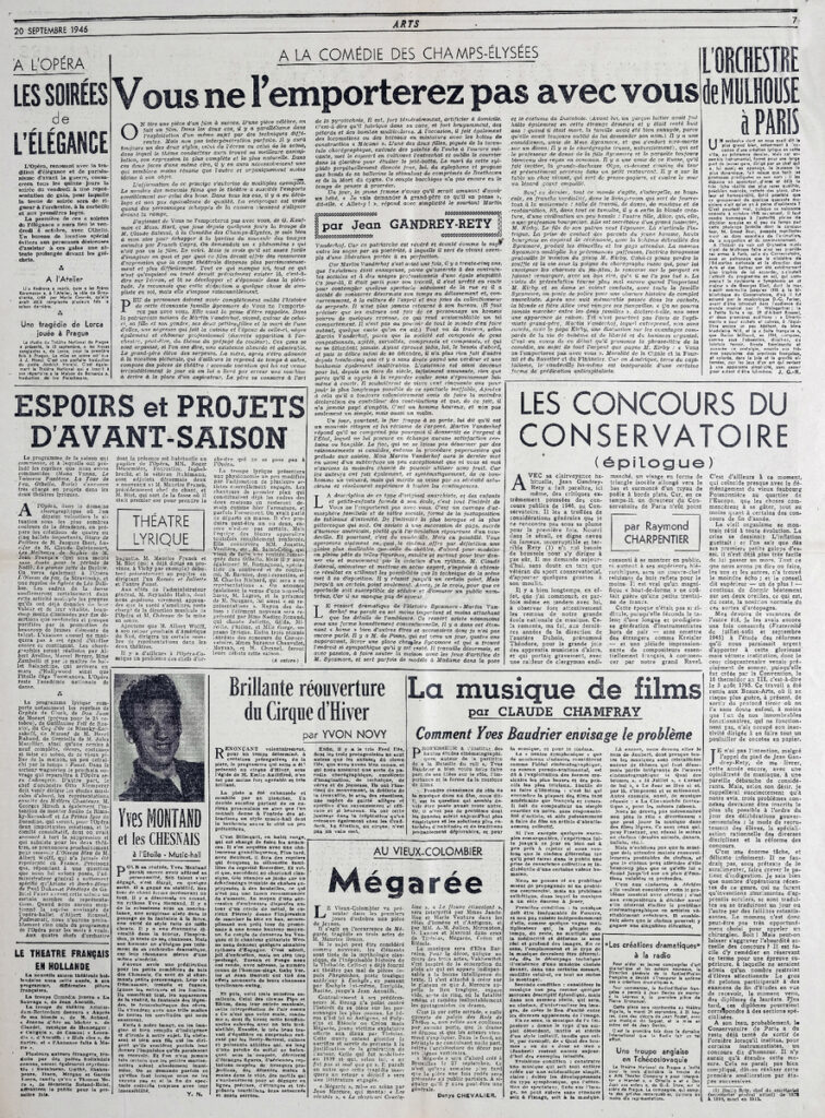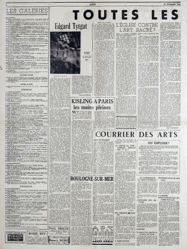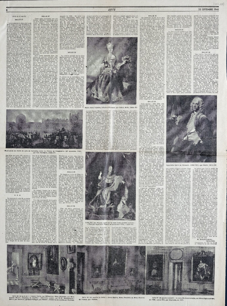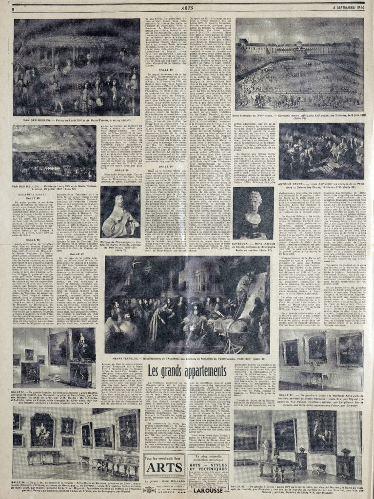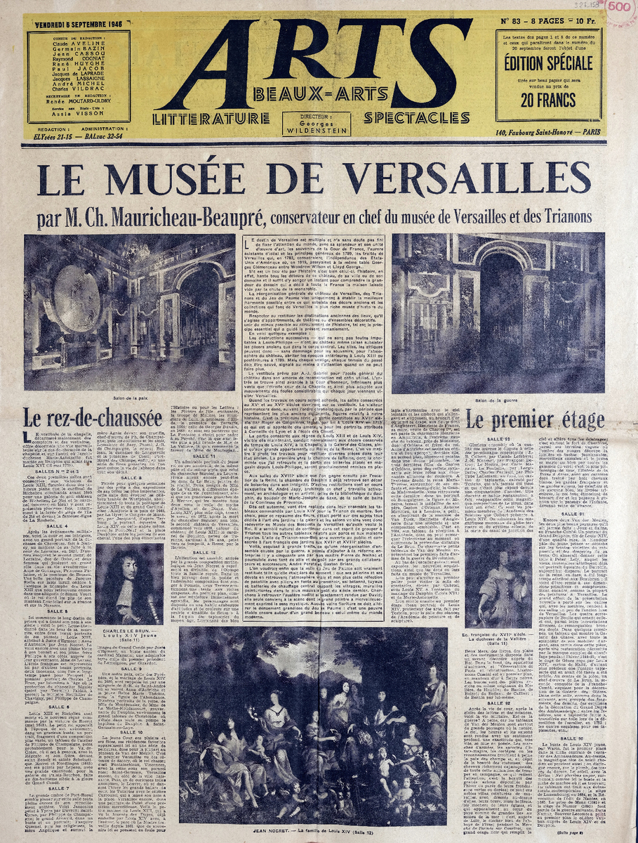 Απόκομμα του περιοδικού “Arts”, έντυπο, στα γαλλικά, χαρτί, δισέλιδο διπλής όψης και δύο φύλλα διπλής όψης, 60×43 εκ., όπου δημοσιεύεται άρθρο του εφόρου του Ανακτόρου των Βερσαλλιών Ch. Mauricheau-Beaupré. Το απόσπασμα εικονογραφείται.