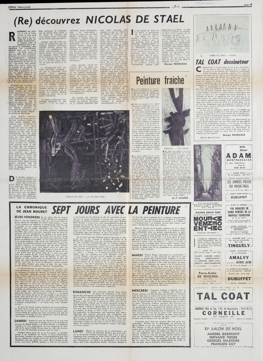Απόκομμα, χαρτί, 60×43 εκ., στα γαλλικά, δημοσίευσης άρθρου αναφερόμενου στο εικαστικό έργο του Nicholas de Staël.