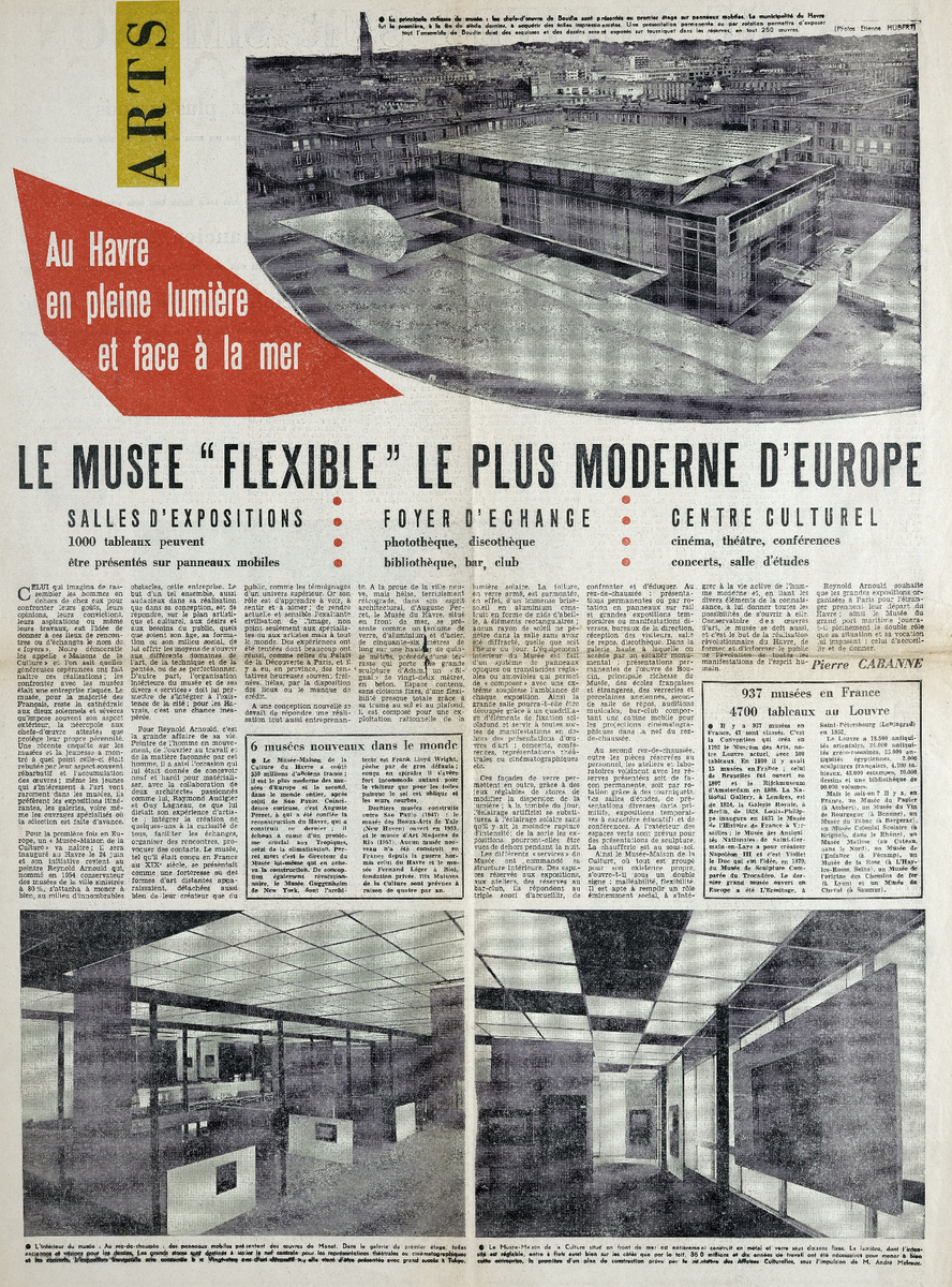 Απόκομμα του περιοδικού “Arts”, έντυπο, στα γαλλικά, χαρτί, διπλής όψης, 59,5×42 εκ., όπου δημοσιεύεται άρθρο του δημοσιογράφου P. Cabanne, αναφορικά με το Μουσείο Σύγχρονης τέχνης στην Havre της Γαλλίας. Το απόσπασμα εικονογραφείται.