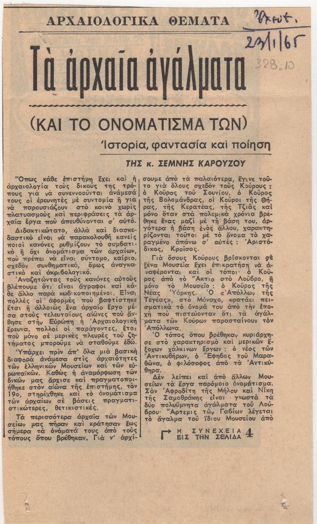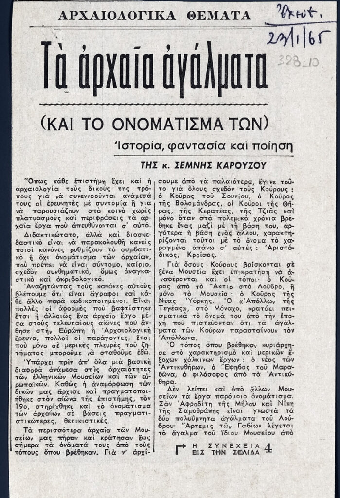 Τα αρχαία αγάλματα και το ονομάτισμά των