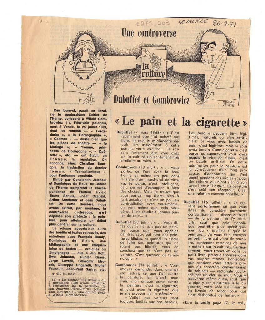 Une controverse, Dubuffet et Gombrowicz