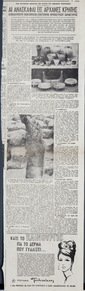 «Αι ανασκαφαί εις Αρχανές Κρήτης αποκαλύπτουν ανακτορικόν συγκρότημα θρησκευτικού χαρακτήρος»