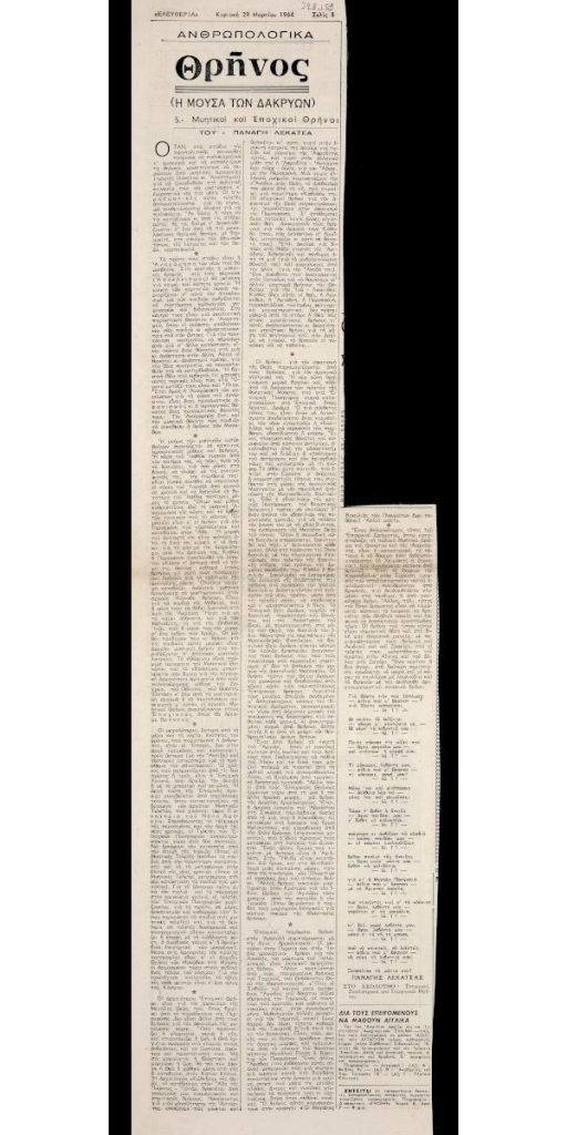 Απόκομμα της εφημερίδας «Ελευθερία» (29/03/1964).