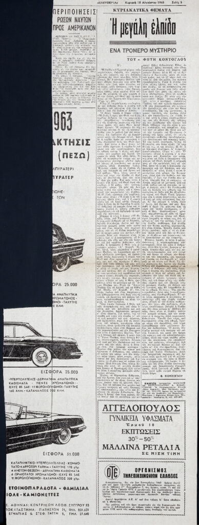 Απόκομμα της εφημερίδας «Ελευθερία» (18/08/1963).