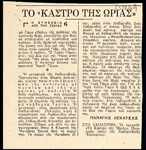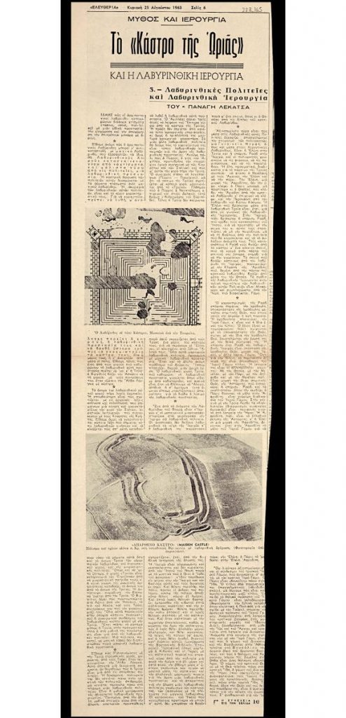 Απόκομμα της εφημερίδας «Ελευθερία» (25/08/1963).