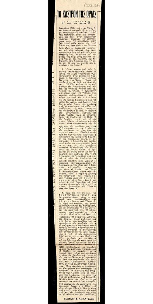 Απόκομμα της εφημερίδας «Ελευθερία» (08/09/1963).