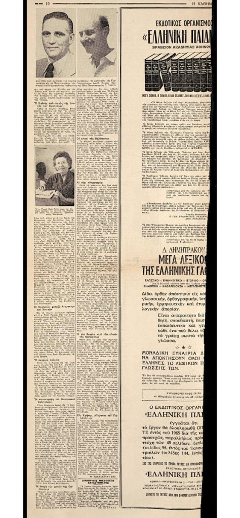 Απόκομμα της εφημερίδας «Η Καθημερινή» (22/11/1964).