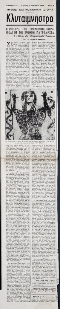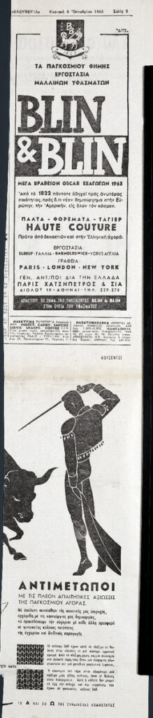 Απόκομμα της εφημερίδας «Ελευθερία» (06/10/1963).