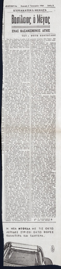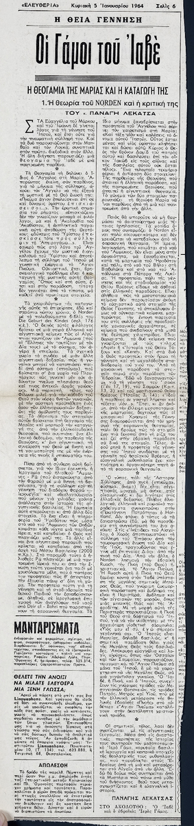 Απόκομμα της εφημερίδας «Ελευθερία» (05/01/1964).