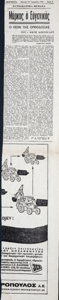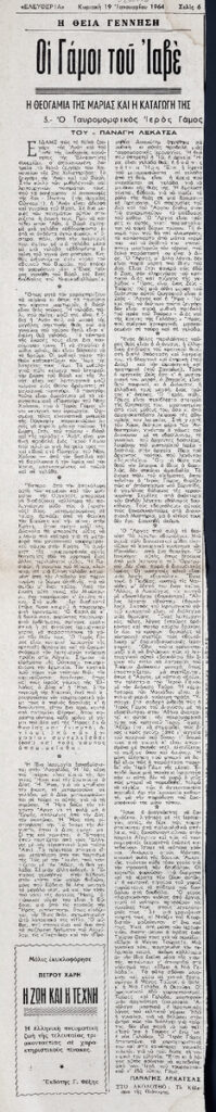 Απόκομμα της εφημερίδας «Ελευθερία» (19/01/1964).