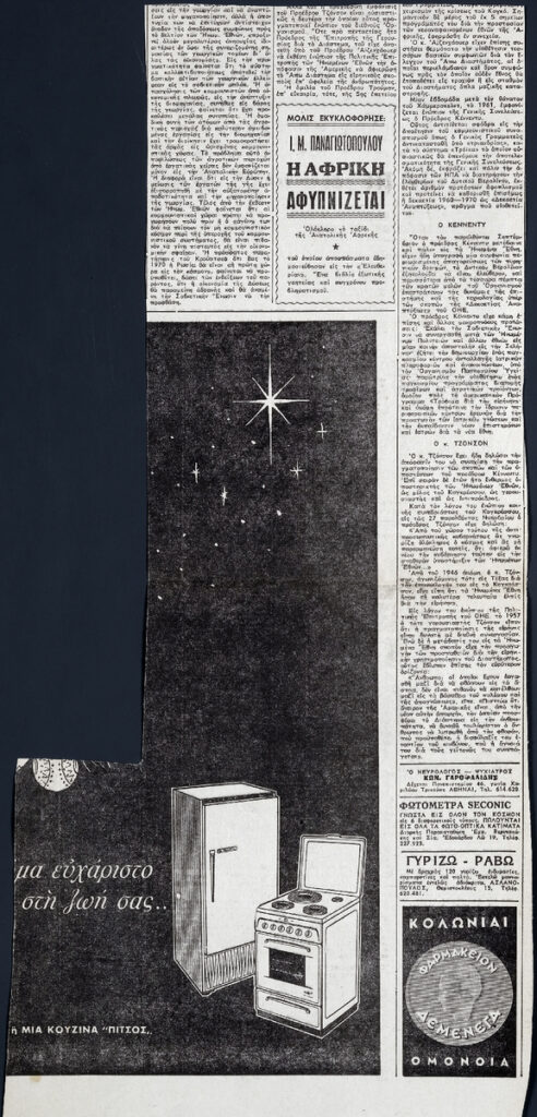 Απόκομμα της εφημερίδας «Ελευθερία» (25/12/1963).
