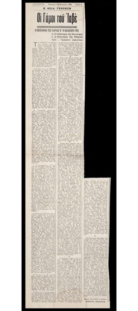 Απόκομμα της εφημερίδας «Ελευθερία» (02/02/1964).