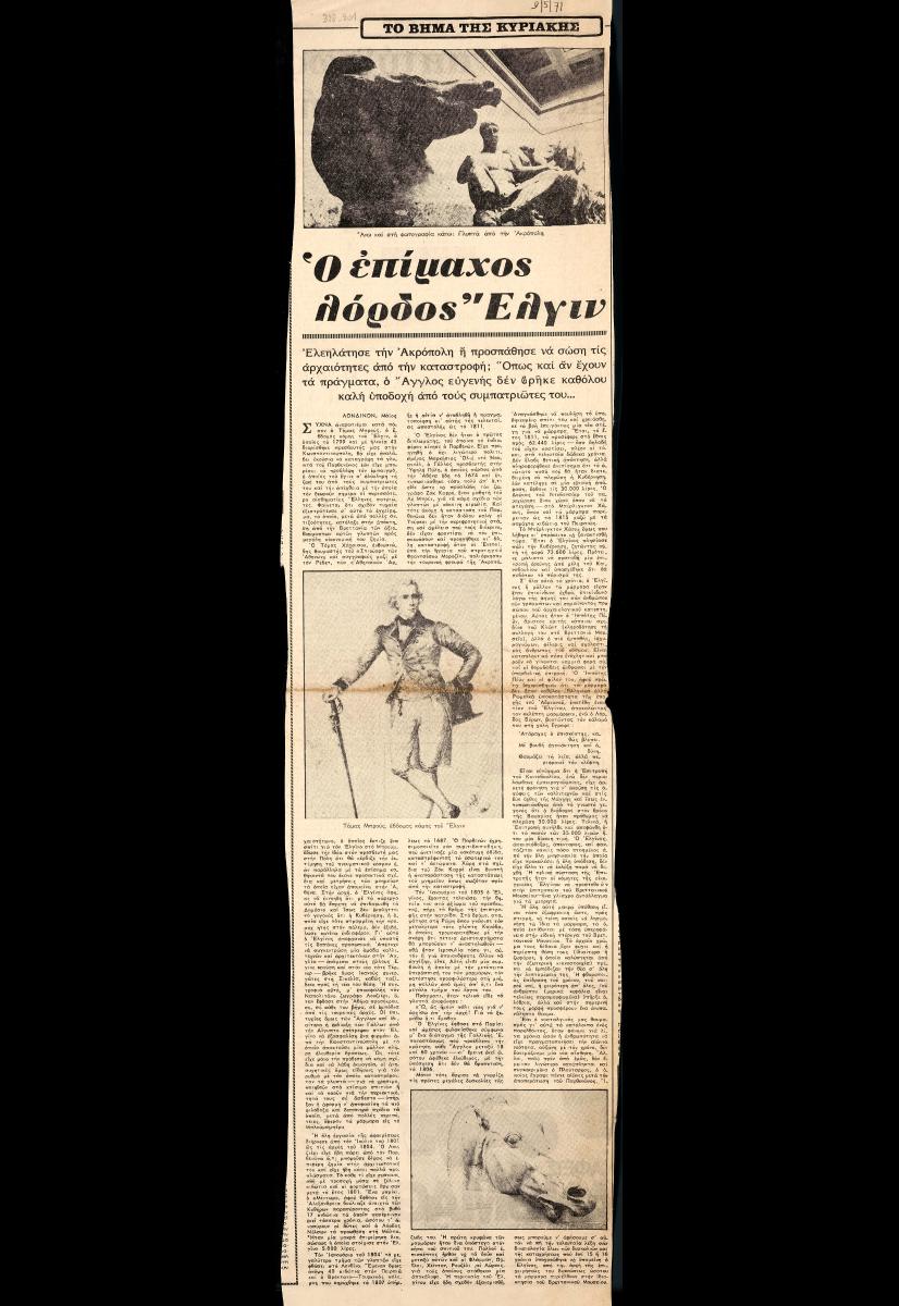 Απόκομμα της εφημερίδας “Το Βήμα” (09/05/1971).