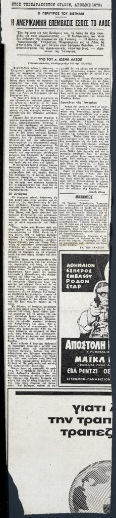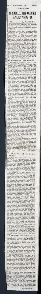 Απόκομμα της εφημερίδας “Η Καθημερινή” (16/03/1967).