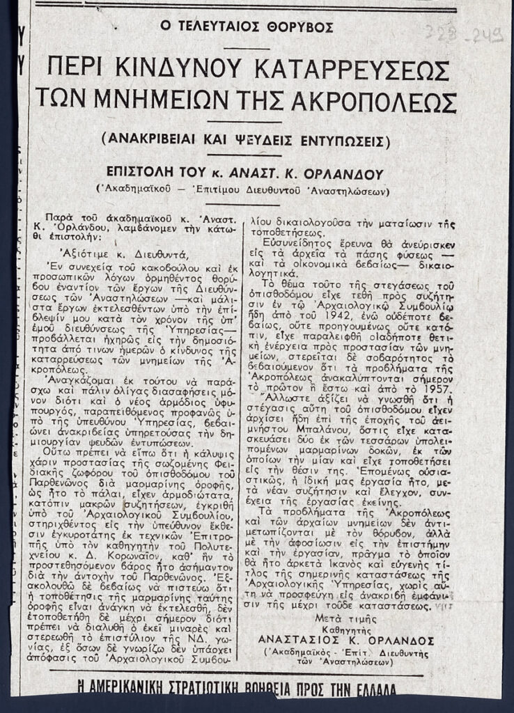 Περί κινδύνου καταρρεύσεως των μνημείων Ακροπόλεως