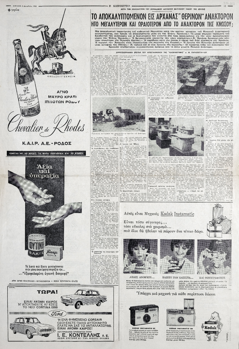 Απόκομμα της εφημερίδας “Η Καθημερινή” (05/12/1965).