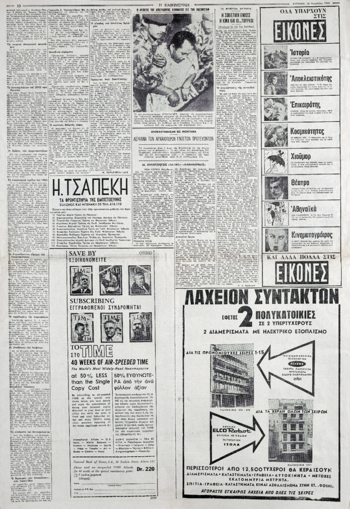 Απόκομμα της εφημερίδας “Η Καθημερινή” (28/11/1965).