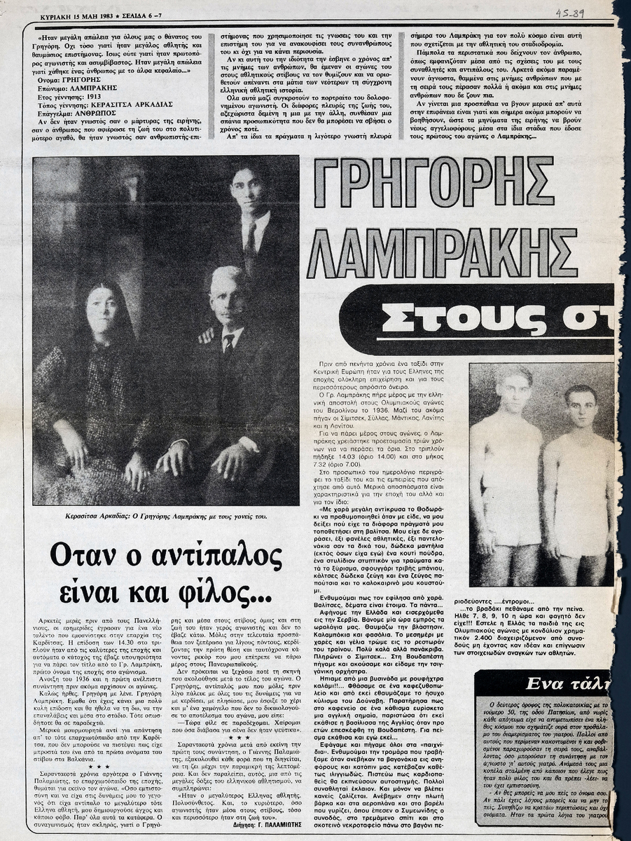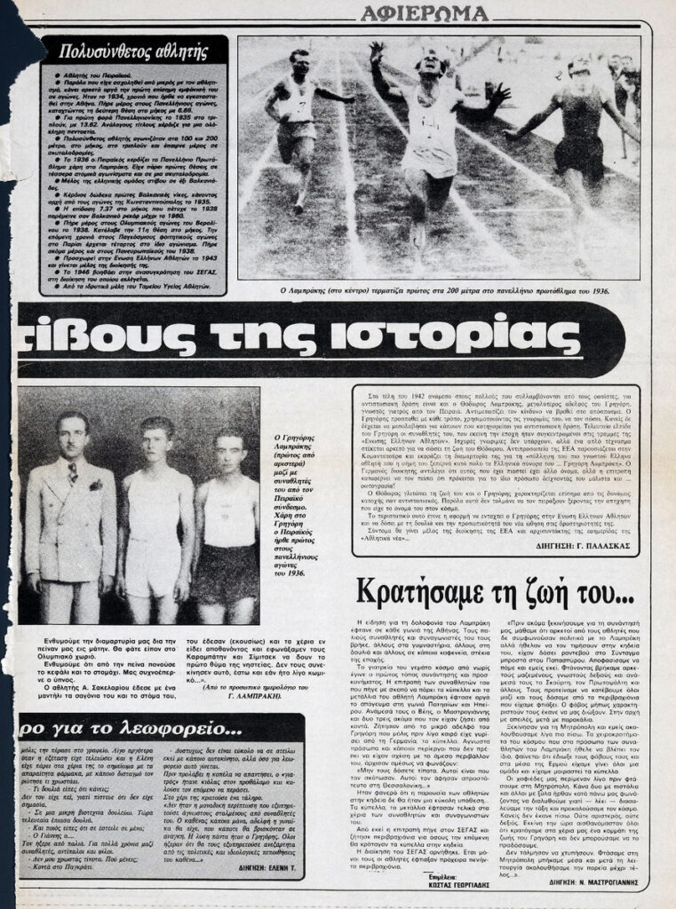 Αφιέρωμα στον Γ. Λαμπράκη, Στους στίβους της ιστορίας