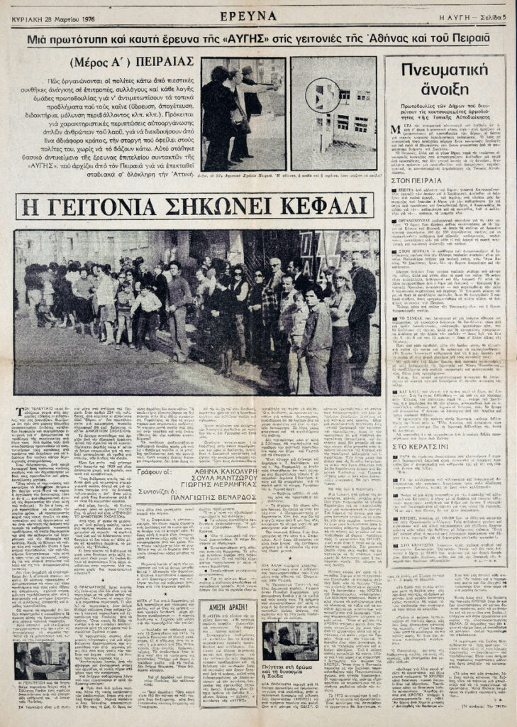 Απόκομμα της εφημερίδας “Η Αυγή” (28/03/1976).