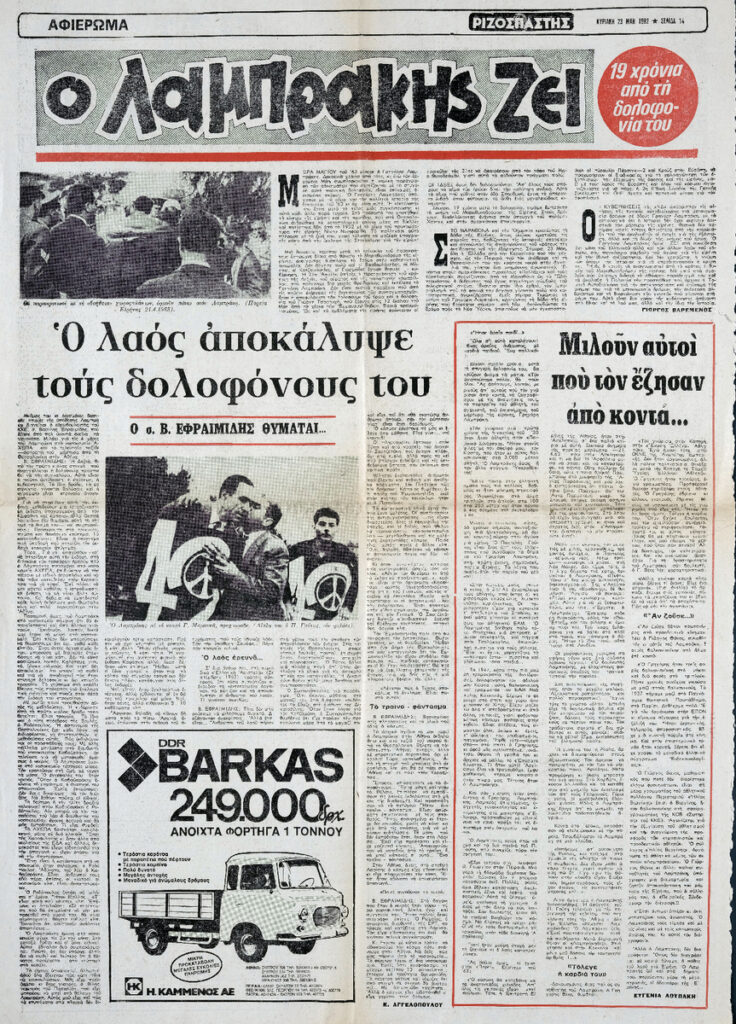 Ο Λαμπράκης ζει. Ο λαός αποκάλυψε τους δολοφόνους του