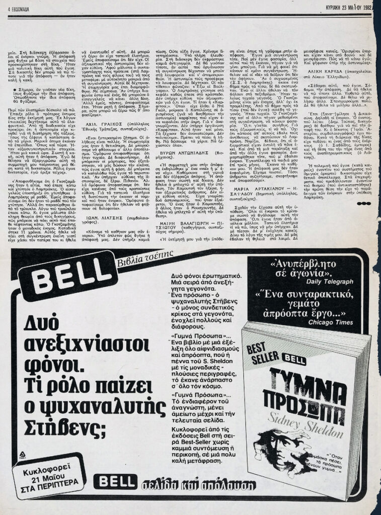 Απόκομμα της εφημερίδας “Το Βήμα” (23/05/1982).