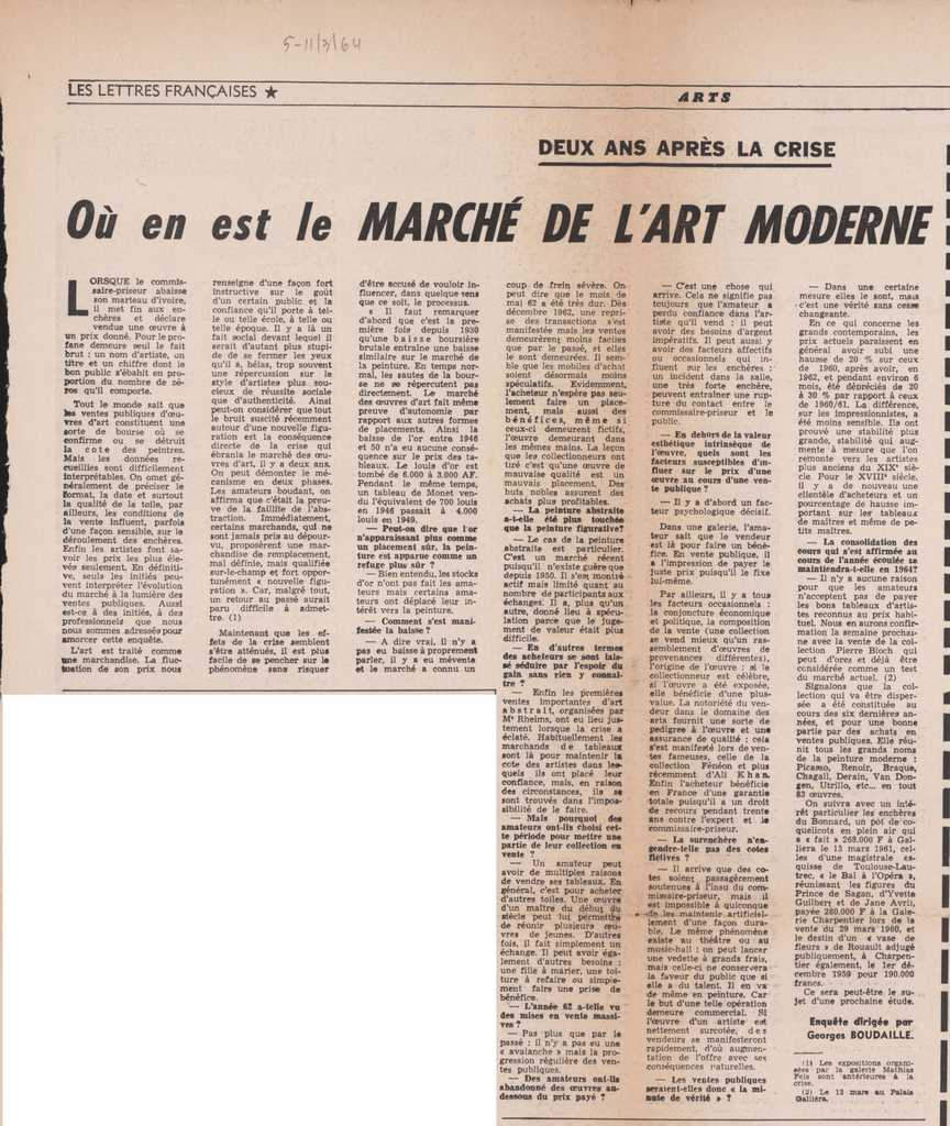 Απόκομμα, χαρτί, 60×43 εκ., στα γαλλικά, δημοσίευσης έρευνας αναφορικά με το εμπόριο έργων τέχνης. Σχολιάζεται η κρίση που αντιμετωπίζει η αγορά.
