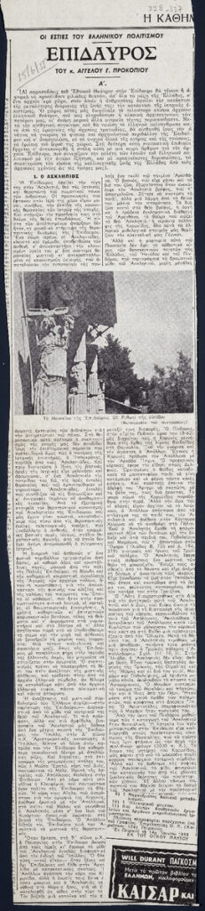 Απόκομμα της εφημερίδας “Η Καθημερινή” (15/06/1955).