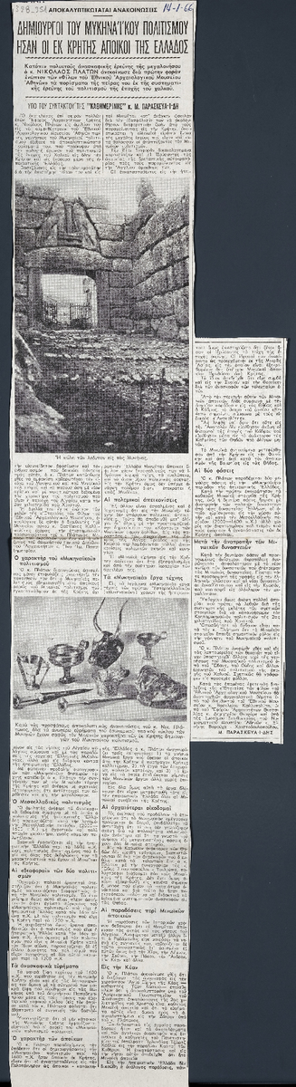 Απόκομμα της εφημερίδας «Η Καθημερινή» (14/01/1956).