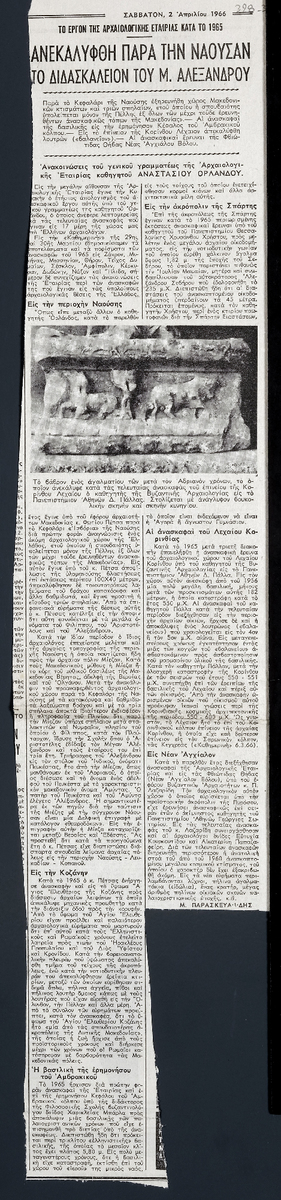 Απόκομμα της εφημερίδας «Η Καθημερινή» (02/04/1966).
