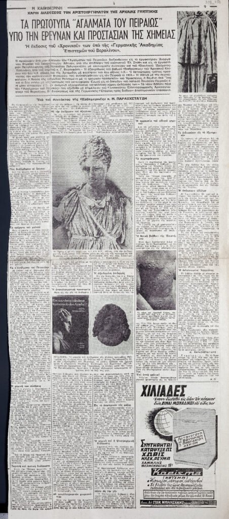 Τα πρωτότυπα ‘Αγάλματα του Πειραίως’΄υπό την έρευναν και προστασίαν της χημείας
