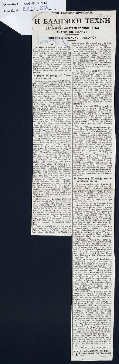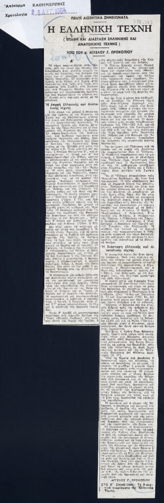 Απόκομμα της εφημερίδας «Η Καθημερινή» (28/08/1964).