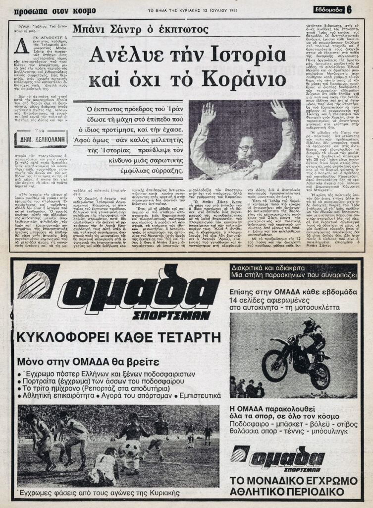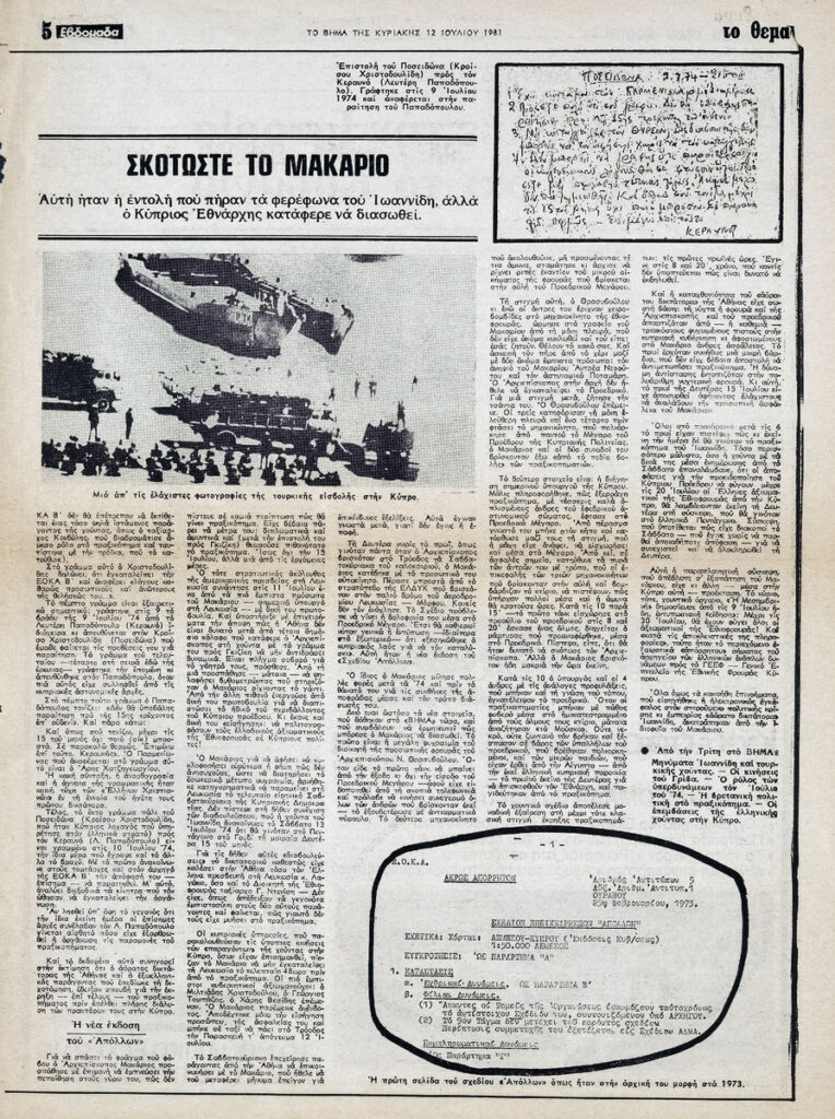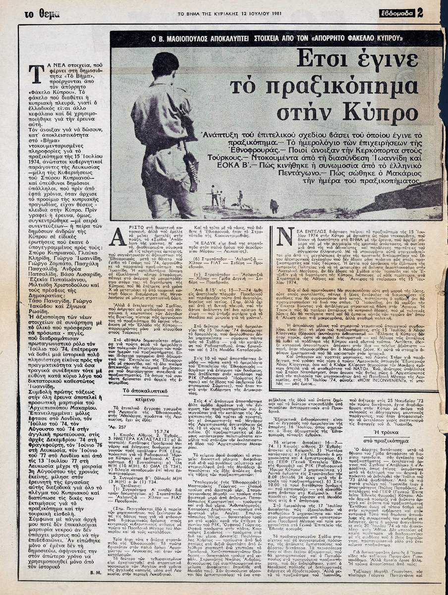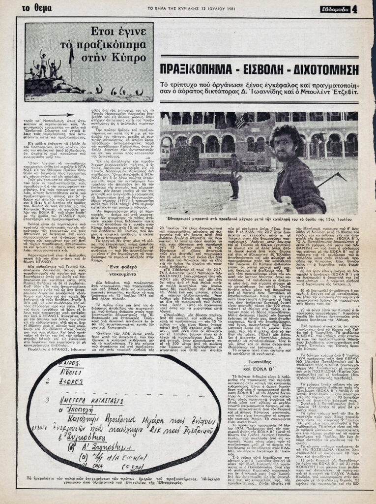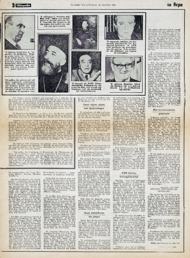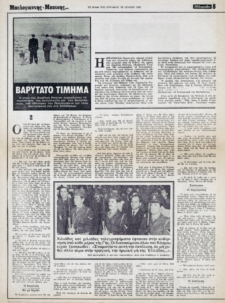 Απόκομμα της εφημερίδας “Το Βήμα” (12/07/1981).