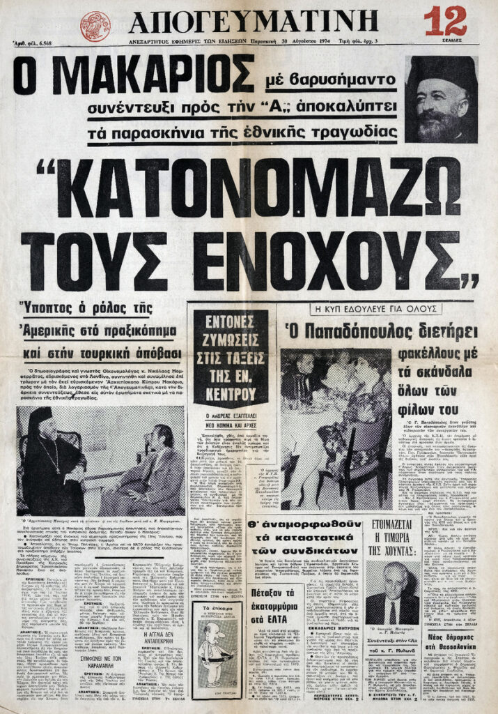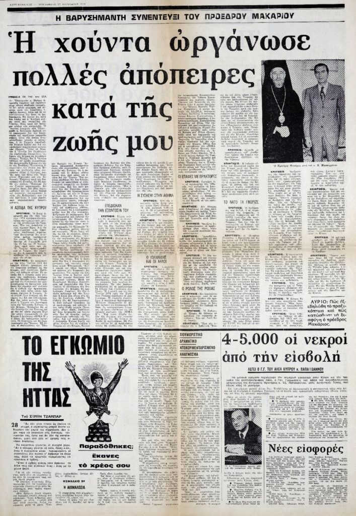 Ο Μακάριος με βαρυσήμαντο συνέντευξι προς την Α αποκαλύπτει τα παρασκήνια της εθνικής τραγωδίας “Κατονομάζω τους Ενόχους